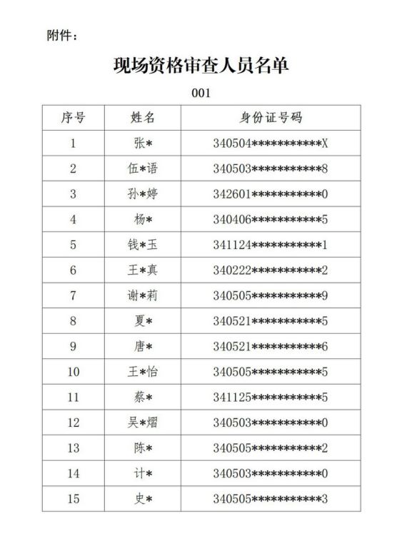 一、现场资格审查人员名单(详见附件) 。